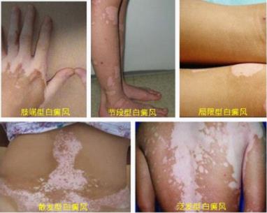 白斑病初期白斑多为指甲至钱币大,近圆形、椭圆形或不规则形,也有起病时为点状减色斑,境界明显;有的边缘绕以色素带,初期大部分白斑病患者白斑面积都是比较小的,有极少数患者初期发病就很快,迅速演变为泛发性白斑病,白斑面积扩至全身等。
