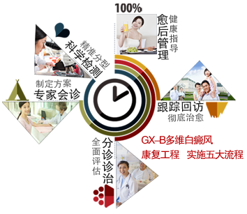 很多白癜风患者治愈后复发是因为日常生活不注意,或者是不善于愈合管理,导致白癜风复发的几率增大。GX-B多维白癜风康复工程通过愈合管理,将患者的健康情况记录分析,为患者提供最有益的健康指导,并从精神放松、个性饮食等多方面入手,联手打造健康生活管理模式。