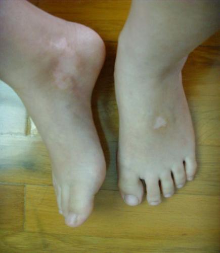 乌鲁木齐新军都白癜风医院的齐家辉医生介绍:白癜风的早期症状,脱色斑的数目一般是比较少的,大致有1-2片,而且多出现在暴露部位的皮肤上,白斑表面的皮肤通常表现为,表面光滑无皮屑,一般无瘙痒感,即使有也比较轻微。白斑呈淡白色或乳白色,边界模糊不清,有朝正常皮肤扩散的趋势。早期的白斑多为指甲至钱币大,近圆形、椭圆形或不规则形,也有起病时为点状减色斑,境界多明显;有的边缘绕以色素带。在少数情况下白斑中混有毛囊性点状色素增殖,后者可增多、扩大并相互融合成岛屿状,白斑处除色素脱失外,患处没有萎缩或脱屑变化,白斑上毛发可失去色素以至完全变白,也有毛发历久不变者。