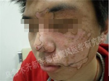 发病部位:脸部大块白斑