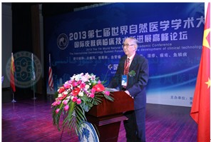 图:世界自然医学会联合总会主席马永华发出“全球皮肤病临床医学研究与技术推广医共体”的倡议